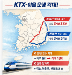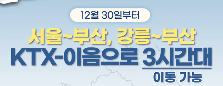 이번 개편으로 서울 ~ 부산, 강릉 ~ 부산 구간이 3시간대 이동권으로 연결되며, 운행 횟수와 정차역도 크게 늘어 철도 이용 편의성이 한층 높아질 전망입니다.