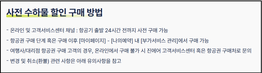 ✔ 짐이 많다면 온라인 수하물 추가 구매 필수